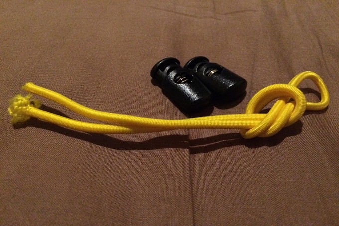 下記の写真のようにするだけです。ULAさんでは「製品」なのでゴムコードの端をプラスチックの部品でうまく纏めていますが、管理人はゴムコードの端をライターであぶっただけです。